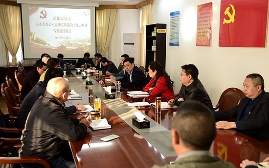 郑德安强调,市委办全体党员干部要认真学习十九大报告原文,用心感悟,结合我市实际,学以致用,把十九大精神贯彻到工作中、融会到思想中、落实到行动中。