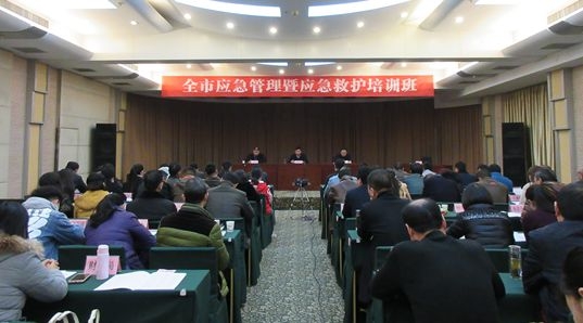 本网讯(见习记者 彭博)11月29日上午,由市政府应急办、市红十字会联合举办的应急管理暨应急救护专题培训班开班仪式在老河口宾馆举行(如图)。