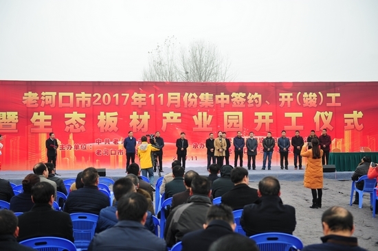 本网讯(记者 李闻)11月30日,我市举行2017年11月项目集中签约、开竣工暨生态板材产业园开工仪式,当天集中签约、开竣工9个项目,总投资32.49亿元。市委副书记王岩,市政协主席刘桥梁,市人大常委会党组书记、副主任陈晓斌等领导出席开工仪式。