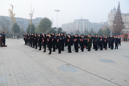 本网讯(通讯员 胡培)“我宣誓:忠于中华人民共和国宪法,维护宪法权威……” 12月4日上午,第四个国家宪法日,我市在抗战广场举行宪法宣誓活动。领誓人手按《中华人民共和国宪法》,带领100余名执法人员举起右拳,面向国旗,庄严宣誓。铮铮誓言,拳拳我心,拉开了我市国家宪法日系列主题宣传活动的序幕。