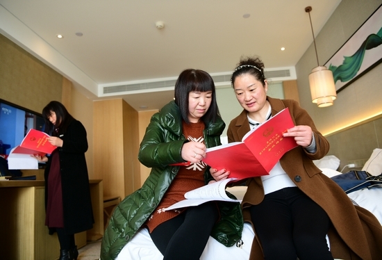 参会人大代表认真阅读会议指南,了解会议议程安排