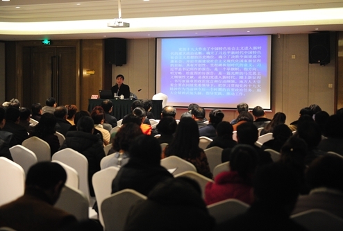 本网讯(见习记者 彭博)12月26日上午,市十届人大二次会议召开代表培训会。邀请省人大内务司法委员会顾问孙少衡教授为代表们做专题辅导报告(如图)。市人大常委会副主任杨苏云主持会议。