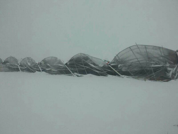 蔬菜大棚在此次降雪中受灾严重,截止4日16时,已造成150余栋大棚垮塌,面积达120余亩,另有70余栋大棚不同程度受损。部分基地两个大棚中间排水沟上积雪达1.5米以上,难以清除。老河口市农业局及时采取措施,加强抗灾救灾。一是派出蔬菜办技术人员深入基地指导大棚加固、清除积雪与棚内加温;二是对重点合作社、大户进行电话指导,尽最大可能将灾害降到最低。