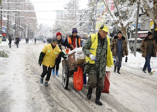 环卫工人清除积雪和垃圾(本网记者 舟语 摄)