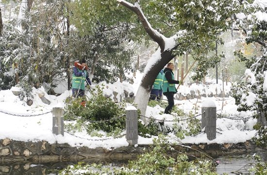 林业园林部门工人清理中山公园树枝(本网记者 舟语 摄)
