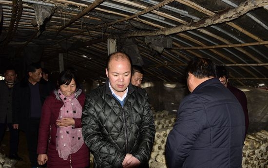 张学林了解杨家湾村蘑菇产业发展情况