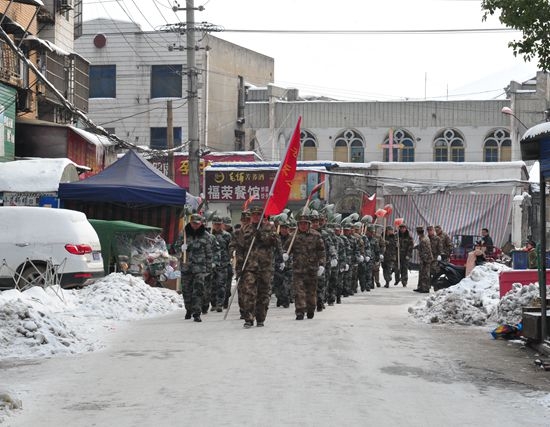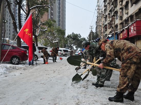 人武部政委喻勇表示:“现在我们老河口市正在创建全国文明城市,我们再次呼吁各个单位和广大市民,积极行动,凝心聚力抗冰除雪,共同营造全市安全环境。”