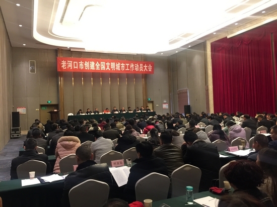 会议宣读了《老河口市创建全国文明城市三年行动计划》。酂阳办事处、城管执法局、公安局、卫计局、林业园林局、光化办胜利路社区、李楼镇张庄村主要负责人做了表态发言。