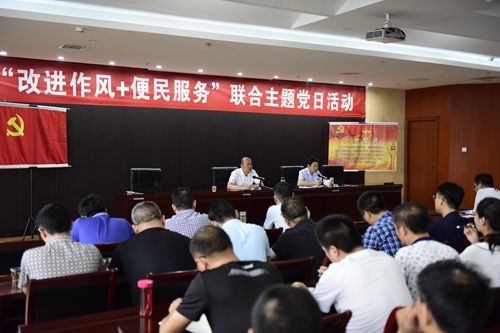 活动当中,全体党员齐唱国歌、重温入党誓词、诵读党章和习近平总书记重要讲话精神;学习了《国务院办公厅关于十省百家办事大厅暗访督查和改进提升窗口服务水平专题调研情况的通报》;张学林围绕“改进作风+便民服务”主题讲了党课。