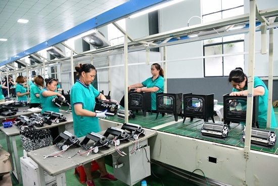湖北若林电器科技有限公司员工正在装配壁炉赶制订单
