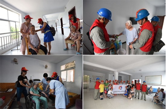 7月15日,在妇联组织下,蓝莲花志愿者们顶烈日、冒酷暑走进福利院与老人们聊天、互动(如图)。有的与老人促膝相谈,唠家常,询问他们的生活起居、身体状况;有的积极帮老人倒水、洗水果;有的搀扶行动不便的老人在楼梯间散步,给他们捶背,并给他们讲解夏季养生保健、用电安全。康泰大药房为老人送去防暑降温药品,测量血压血糖,嘱咐他们天气炎热,注意身体,并祝愿老人们健康长寿。