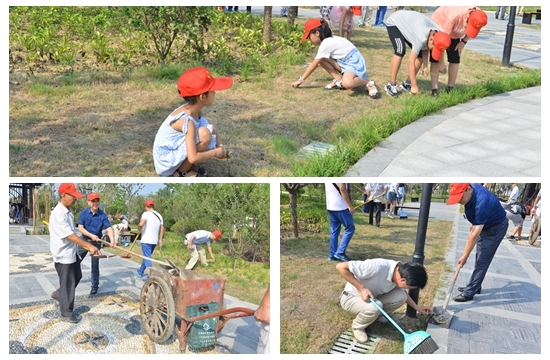 经过一个小时的忙碌,公园卫生环境得到了进一步提升,志愿者们的衣服也被汗水湿透了。他们顶高温、战酷暑,用“滴滴汗水”传递着奉献精神。