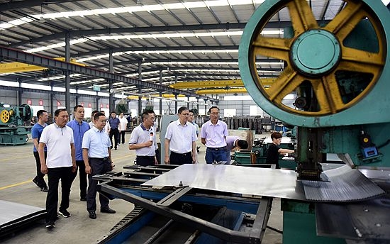 陈晓斌一行先后实地视察了飞来钟粮油设备、高升纺织、雪飞化工等高新技术企业,详细了解企业发展历程和生产经营情况,并听取了市委常委、副市长施海潮所作的工作情况汇报。