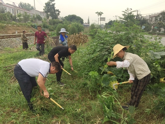 本网讯(通讯员 张亚丽)8月4日,市国土资源局志愿者服务队,顶烈日、战酷暑,到市国土资源局扶贫包保村洪山嘴镇杨家湾村,将“百日洁城”活动推进到扶贫点上,在帮助贫困户脱贫致富的基础上,开展“精准灭荒”行动,因地制宜、因人施策,帮助杨家湾村实现“财务富足、身体富足、环境富足”全面脱贫富足的目标(如图)。