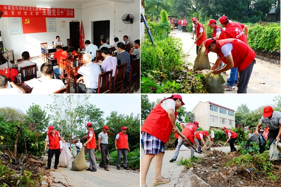 本网讯(通讯员 陈国鹏)8月6日,市委宣传部机关党支部与对口扶贫村张集镇赵营村党支部联合开展主题为“美化乡村环境 创建宜居家园”的8月“支部主题党日+”暨城乡百日清洁活动(如图)。