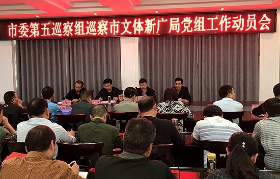本网讯 根据市委和市委巡察工作领导小组的统一部署,2018年9月17日上午,市委第五巡察组巡察市文体新广局党组工作动员会召开。市委第五巡察组组长杨国林作动员讲话,市委巡察工作领导小组成员、市委办常务副主任陈仁义同志就做好巡察工作提出了具体要求,市文体新广局党组书记、局长甘霖同志主持会议并作表态发言。