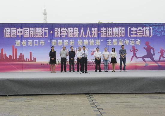本网讯(记者 彭博 通讯员 肖劲)9月19日上午,2018年“健康中国荆楚行·科学健身人人知——走进襄阳”暨老河口市“健康促进 慢病管理”主题宣传活动启动仪式在我市抗战广场举行(如图)。襄阳市卫计委爱卫办主任徐飞,襄阳市疾控中心副主任龚文胜,我市市委常委、副市长施海潮出席启动仪式。