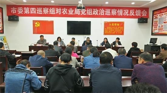 按照市委巡察工作统一部署,10月11日,市委第四巡察组在市农业局召开政治巡察情况反馈会议。市委第四巡察组组长刘建波反馈了本轮政治巡察情况,市委巡察工作领导小组成员、市委巡察办主任蔡国良就巡察整改提出了要求,市人民政府副市长何靖出席会议并作讲话,市农业局党组副书记、副局长吴向东主持会议并作表态发言。