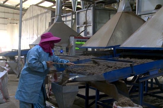 艾之约公司是一家集种植、研发、加工为一体的艾产品生产企业,疫情严重时期,公司停产。记者在车间看到,一台抓草机来回穿梭正转运艾草,粉碎机源源不断将艾草粉碎成为粉末,更为细小的粉末则被进一步筛选成为艾绒。在产品展示区,公司生产的艾灸、艾柱、艾绒被、等系列产品琳琅满目,一应俱全。