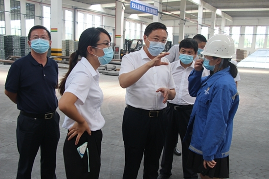 在顺博铝合金公司,赵芝斌走进生产车间,详细了解企业生产、销售情况,并参观“顺博合金”——仙人渡镇新阶层统战工作实践创新基地,听取我市基层统战工作开展情况介绍。