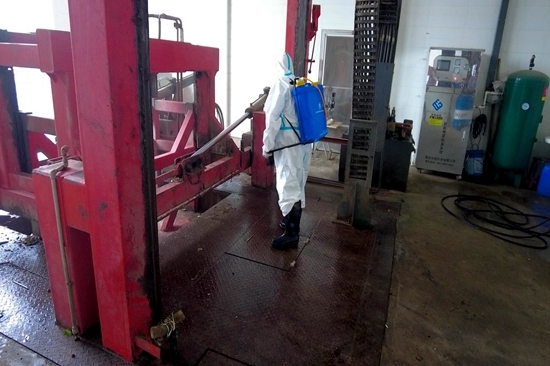 垃圾转运站是居民生活垃圾的中转枢纽,也是容易滋生细菌、传播病毒的薄弱点。水西门垃圾转运站内,工作人员忙着对垃圾压缩机进行喷洒消毒。