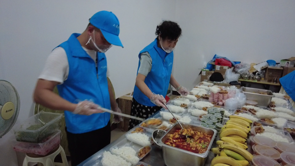 采访中记者还注意到,该配餐企业为每一份盒饭里面装上了一张小卡片,卡片上画有红色的爱心,写有“人隔心不隔,真情永相悦,共愿春行早,再建新伟业”的祝福话语,让人倍感温馨。