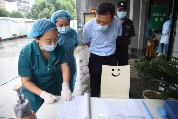本网讯(通讯员 王娟 倪潇炜)8月13日,市委常委、纪委书记王双义采取“四不两直”的方式到市居福酒店隔离点、酂阳街道高潮社区暗访检查疫情防控工作责任落实情况。