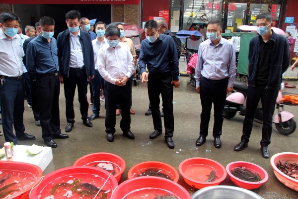 曹祖金先后到丁字街马路市场、渔政执法大队、渔具店、仙人渡镇刘家营村等处,了解水产品销售、禁捕监控系统运行、渔具市场管理、打击非法捕捞等情况。