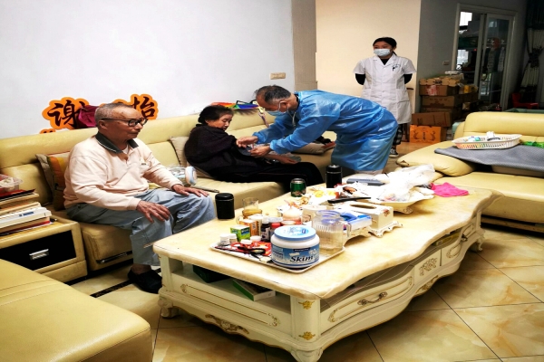 在老干部家中,志愿者和医护人员详细地询问了老人的过往疾病史、近期身体状况以及用药情况等,对符合接种条件的进行个人信息登记,讲解接种疫苗的好处和注意事项,充分打消了他们心里的疑惑。在接种完成后留观过程中,接种老人十分感动,对他们的工作给予肯定。