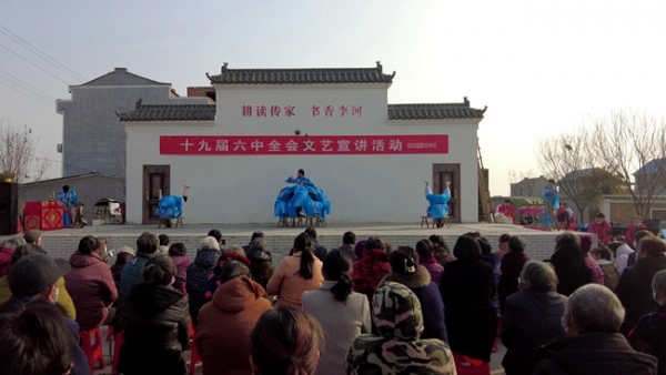本网讯(全媒体记者 王雅丹 黄嘉欣)12月7日,党的十九届六中全会文艺宣讲活动在孟楼镇李河村举行,用群众喜闻乐见的曲艺和乡音,为大家宣讲全会精神。
