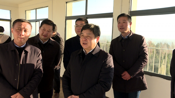 在洪山嘴镇林茂山林场,曹祖金详细询问森林防火、森林资源保护、林业有害生物防治、野生动物保护等工作开展情况。