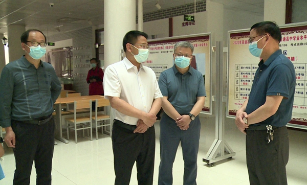 冯玉强先后来到市第四中学、高级中学、第一中学,查看考场、考点办公室、学校食堂等,询问考点疫情防控、应急处置预案及考生食宿等安全保障情况。