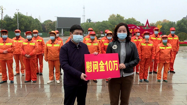 在慰问活动现场,曹祖金代表市委、市政府向环卫工人代表致以节日的问候,并送上慰问金,感谢他们坚守岗位、默默奉献,为净化、美化城市环境做了大量富有成效的工作。他希望广大环卫工人继续发扬爱岗敬业、吃苦耐劳的精神品格,在平凡岗位上书写不平凡的故事。同时叮嘱环卫工人务必做好个人疫情防护,确保身体健康。