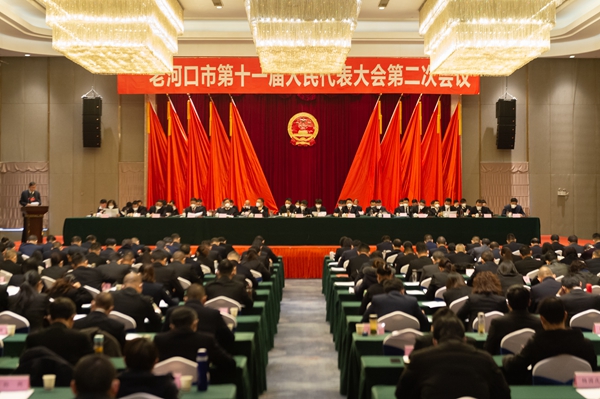 市人民政府办公室主任邓晓勇受市人民政府委托作《老河口市人民政府关于市第十一届人民代表大会第一次会议议案、代表建议、批评和意见办理情况的报告》。