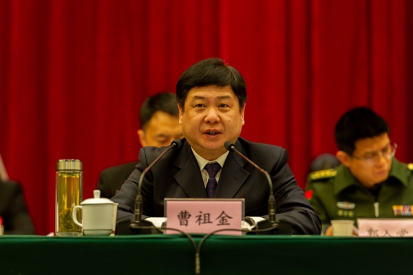 曹祖金主持会议。上午9时,曹祖金宣布:老河口市第十一届人民代表大会第三次会议开幕,全体起立,高唱国歌。