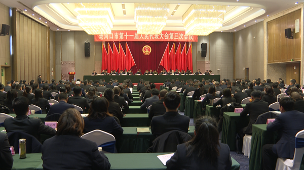 市人民政府办公室主任邓晓勇受市人民政府委托作《老河口市人民政府关于市第十一届人民代表大会第二次会议议案、代表建议、批评和意见办理情况的报告》。