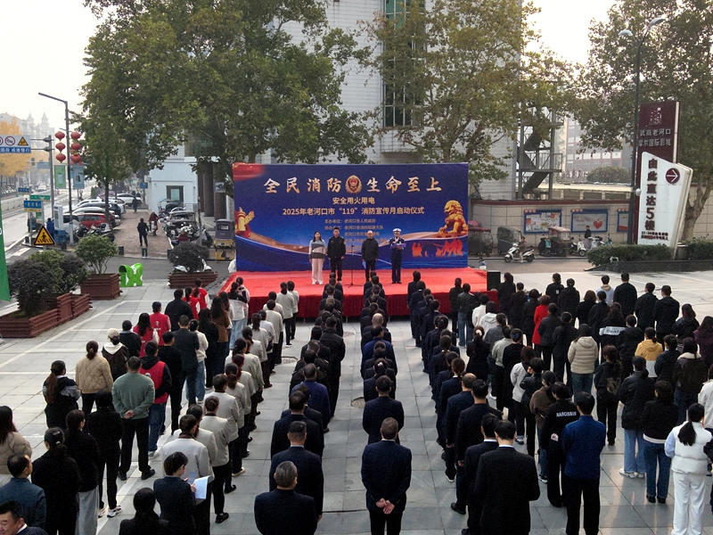 本网讯(通讯员 王旭寅)11月5日上午,2025年我市“119”消防宣传月启动仪式在武商老河口购物广场举行。市政府副市长付静忠出席仪式并讲话,各乡镇办、消防安全委员会成员单位分管领导,社区(村)书记,消防安全重点单位、消防志愿服务团队、新闻媒体记者等300余人参加活动。