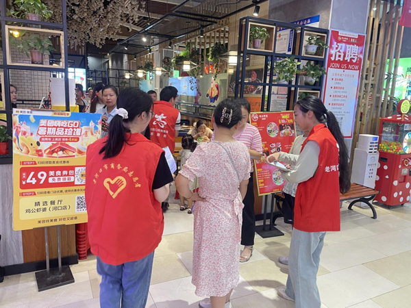 活动现场,志愿者通过发放“反对浪费 崇尚节约”倡议书,引导餐饮企业争做行业自律的引领者,鼓励广大市民争做光盘行动的践行者,积极参与到文明节俭的行列。