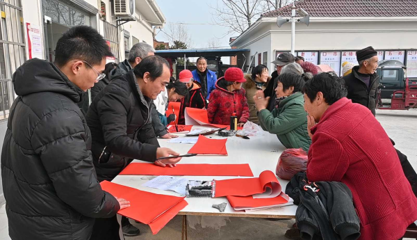 本网讯(全媒体记者 李靖宇 通讯员 曹奕菲)1月30日,孟楼镇王楼村新时代文明实践站举行义写春联送祝福活动。