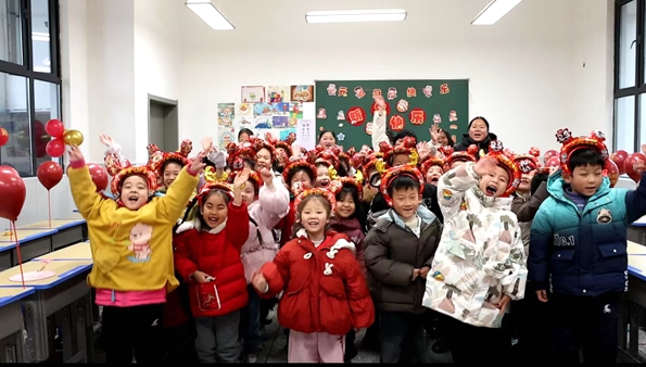 学生张文茜说:“今天我和同学们一起打腰鼓跨年啦!真的太热闹了!新的一年,我们要继续加油,做闪闪发光的小学生!”