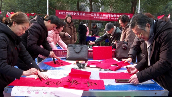 居民韩佩佩说:“今天社区组织了写春联、送福字活动,我们居民都特别高兴。拿到手写的春联和福字,年味一下子就浓了起来。”