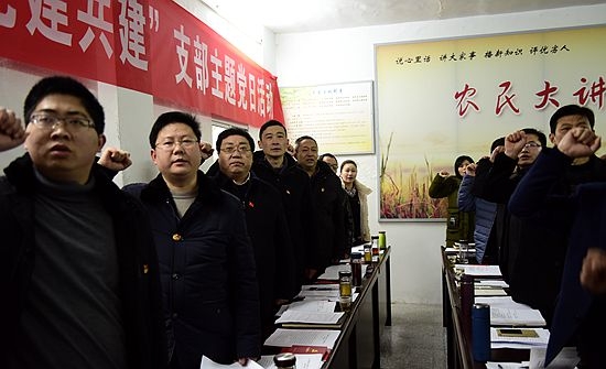 活动中,全体党员唱国歌、重温入党誓词、交纳党费、诵读《党章》、集中学习党规、系列讲话和先进典型,并观摩了李家染坊村集体经济、美丽乡村、基层组织建设情况。