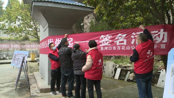 活动中,志愿者倡导群众养成文明祭祀习惯,杜绝违规祭祀用火,随后还发起签名行动。