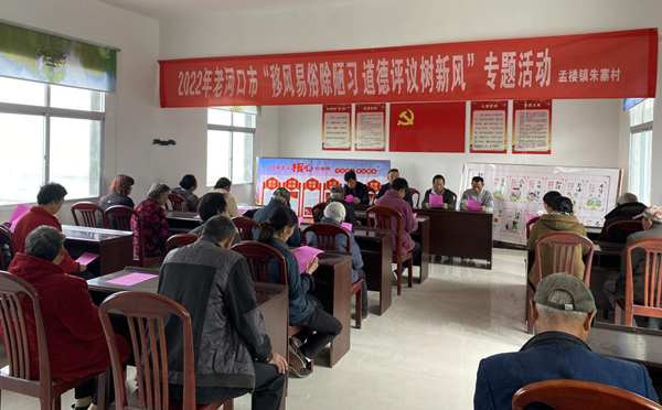 本网讯(通讯员 孟可 房敬宇)近日,孟楼镇朱寨村举办“移风易俗除陋习 道德评议树新风”专题活动。朱寨村道德评议委员会通过宣讲、社会主义核心价值观主题展板展示、村民代表签承诺书等形式,倡导村民革除陈规陋习、遏制不良风气,树立文明新风,弘扬社会主义核心价值观。