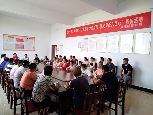 活动中,曹坡村红白理事会成员采用讲座形式,倡导村民喜事新办、丧事从简,推动移风易俗改革,引导村民革除陈规陋习,遏制婚丧嫁娶中的不良风气,广泛宣传文明新理念,树立和谐社会新风尚,使移风易俗理念深入人心。