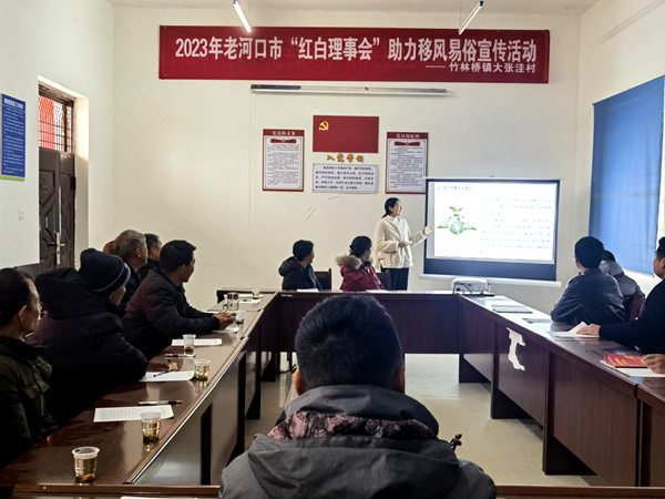 本网讯(通讯员陈俊灵)3月23日,竹林桥镇大张洼村开展“红白理事会”推动文明乡风宣传活动,积极宣传动员引导群众,养成健康文明的生活方式。