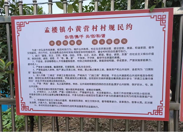 小黄营村的这一做法,正是孟楼镇扎实推进村规民约引领移风易俗新风尚的一个缩影。一个好的村规民约,能让一个村呈现新气象。目前,孟楼镇20个村(社区)均已修订完善村规民约,充实婚事新办,丧事简办、孝亲敬老等移风易俗内容,特别是针对婚丧改革、移风易俗等作出针对性规定,明确告诉村民们红白喜事等应该怎么操作、不该做什么,使村规民约真正实现引导、教育、警示、约束的作用。