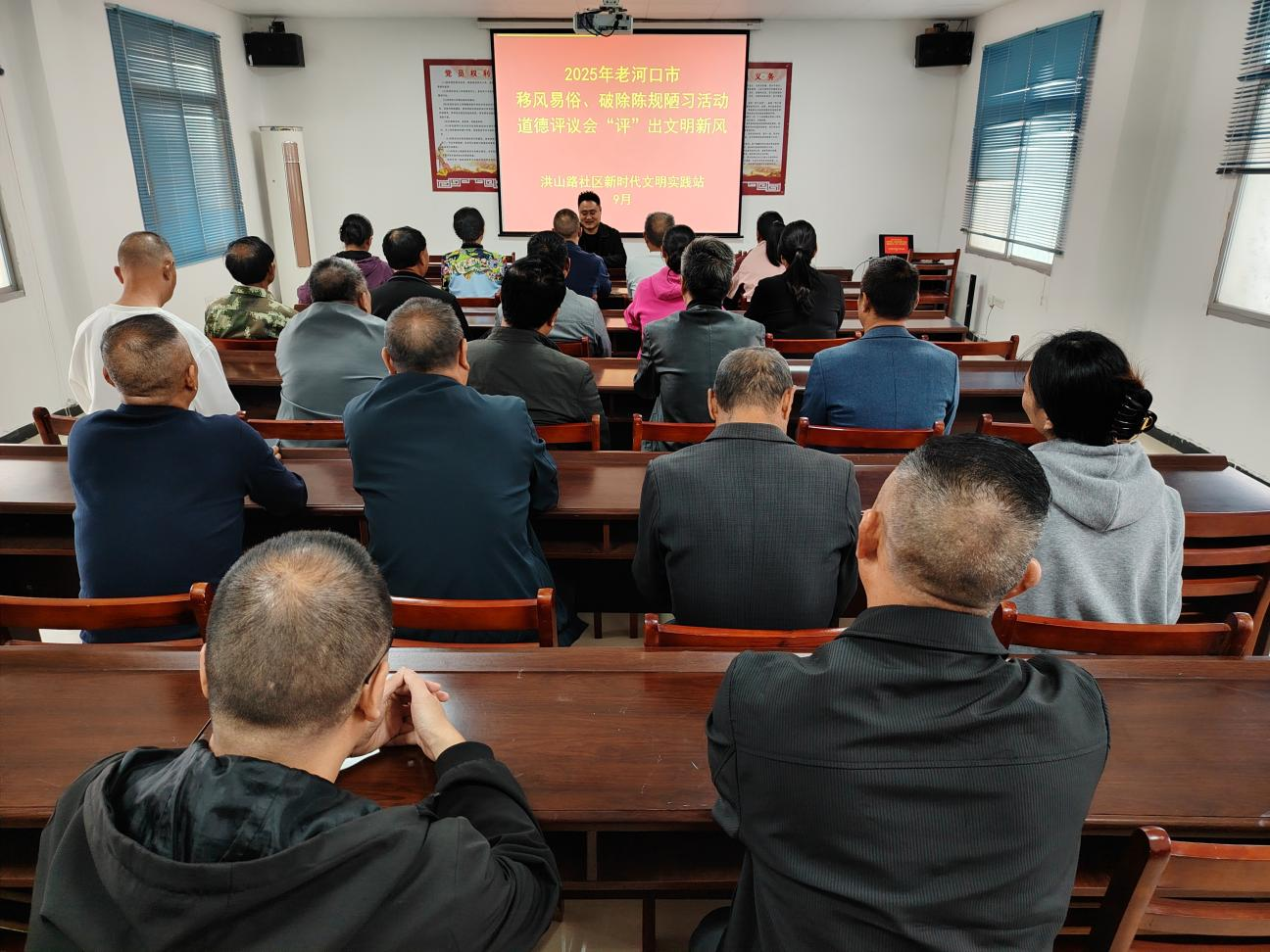 本网讯(通讯员 陈俊杰)9月22日,洪山嘴镇以推进移风易俗为目标,在洪山路社区新时代文明实践站组织开展道德评议会,通过群众共议、共评的方式,破除陈规陋习,倡导文明新风。